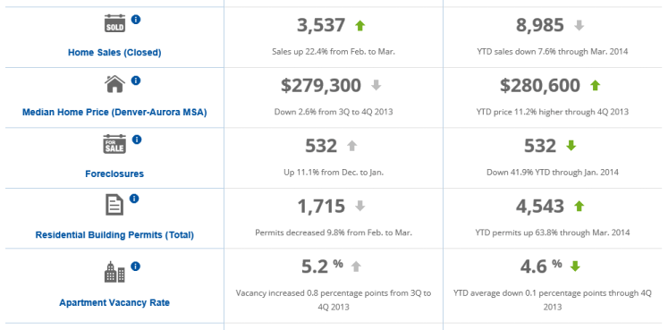Here is a quick snapshot of metro Denver’s economic activity in residential real estate provided by the Metro Denver Economic Development Corporation. You can view the full snapshot for the entire economic sectors here: May 2014