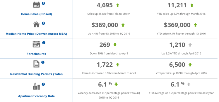 Here is a quick snapshot of metro Denver’s economic activity in residential real estate provided by the Metro Denver Economic Development Corporation. You can view the full snapshot for the entire economic sectors here: June 2016