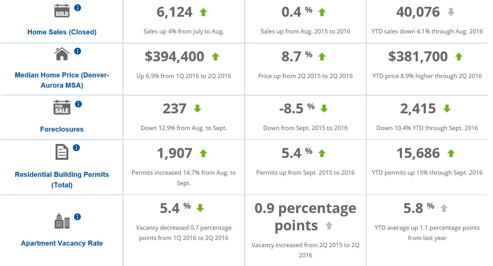 Here is a quick snapshot of metro Denver’s economic activity in residential real estate provided by the Metro Denver Economic Development Corporation. You can view the full snapshot for the entire economic sectors here: November 2016